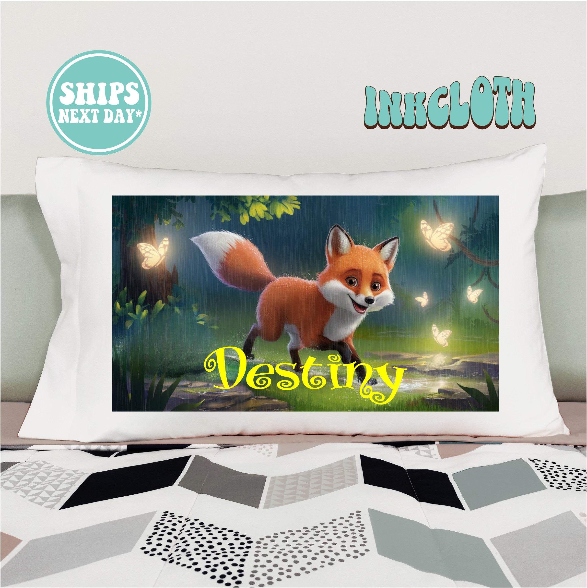 Bring a splash of ocean magic to bedtime with this adorable Fox in a Forest pillowcase, personalized just for your little one! 🌊💚